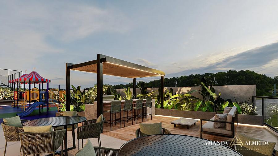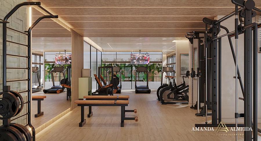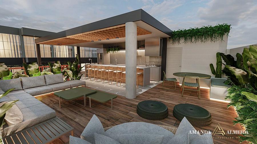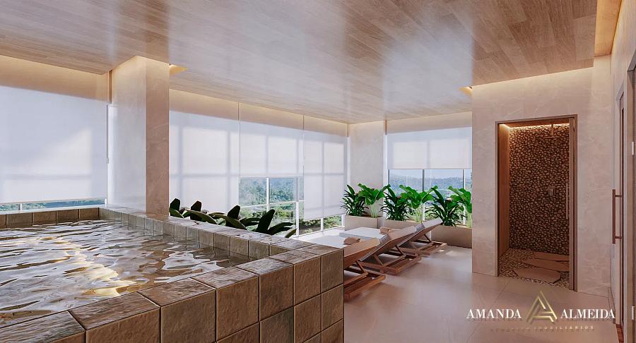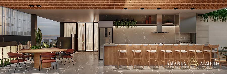 O apartamento oferece vista panorâmica e vista mar, living integrado à sala de estar e jantar, cozinha americana com espaço gourmet, sacada com churrasqueira, lavabo, área de serviço, acabamento em porcelanato e gesso, além de infraestrutura completa para ar-condicionado split.