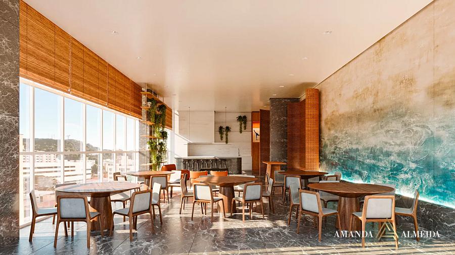 • Amplo Living com Espaço Gourmet e Churrasqueira a Carvão