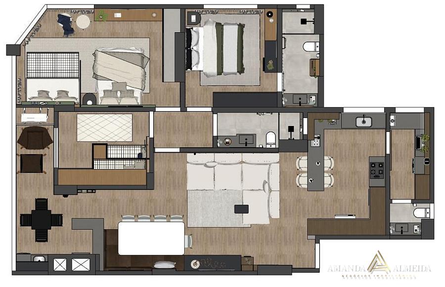 Este apartamento mobiliado, decorado e equipado oferece 03 dormitórios, sendo 01 suíte, além de living integrado que conecta sala de estar e jantar, cozinha funcional, lavabo, área de serviço e churrasqueira a carvão. O imóvel conta ainda com 01 vaga de garagem, unindo praticidade e elegância em cada detalhe.
