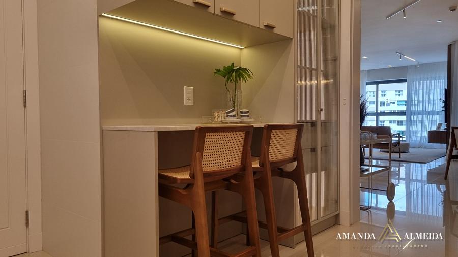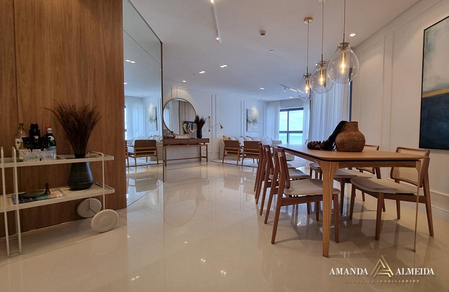 O apartamento oferece vista para o mar e foi planejado para proporcionar conforto e sofisticação: são 04 suítes, incluindo 01 master com hidromassagem, living integrado, sacada com churrasqueira a carvão, lavabo, cozinha funcional, área de serviço e 03 vagas de garagem.
