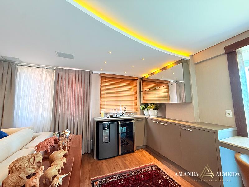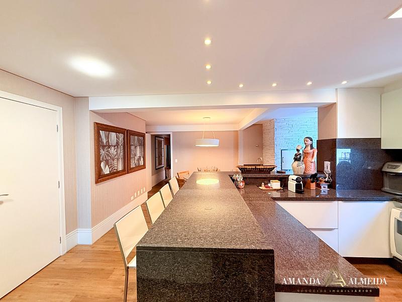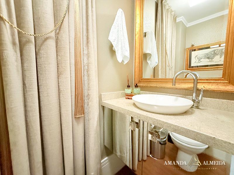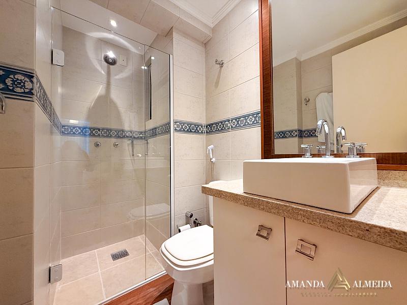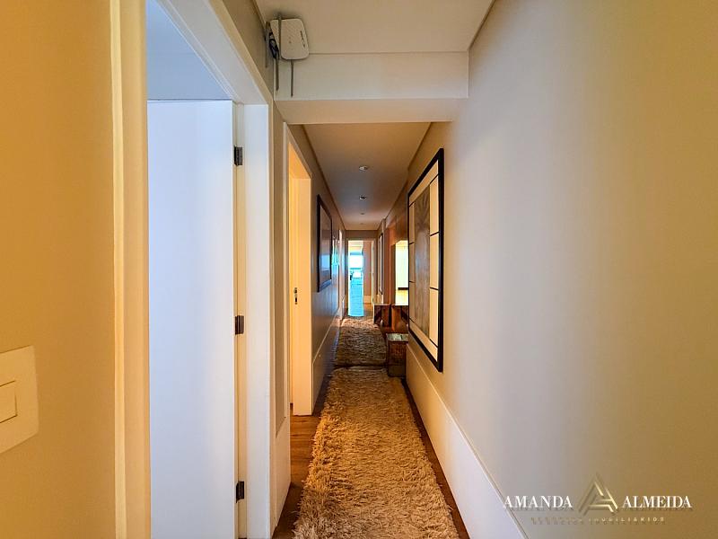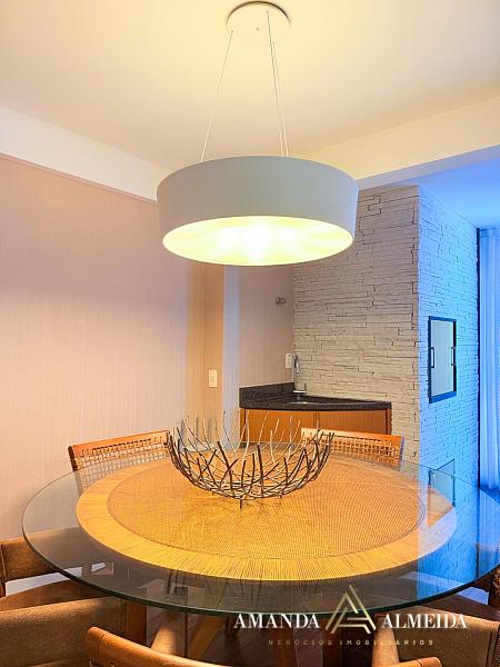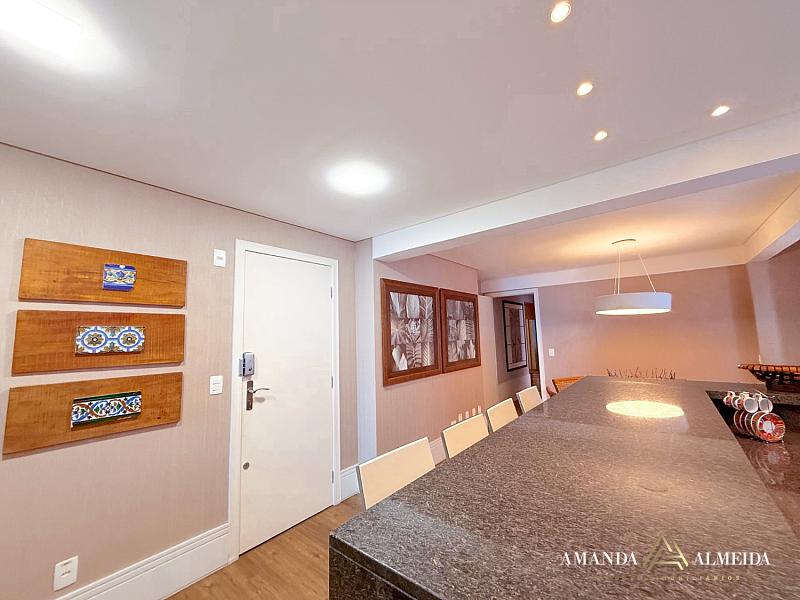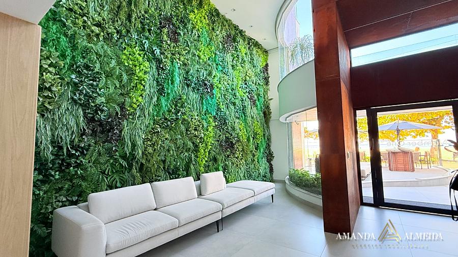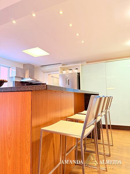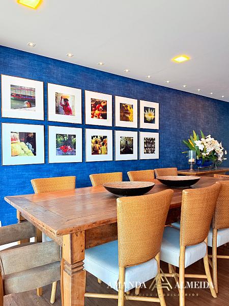 Finamente mobiliado e decorado, o imóvel apresenta acabamentos em gesso, cozinha planejada, lavabo, banheiro social e entrada de serviço. O conforto térmico é garantido pelo ar-condicionado em todos os ambientes. Para maior praticidade, conta com 03 vagas de garagem, incluindo 01 equipada com ponto para carregamento elétrico.