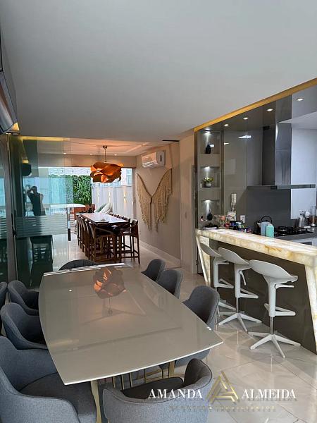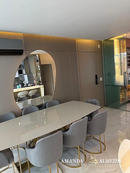 O apartamento, finamente mobiliado, conta com 03 suítes, sala de estar e jantar integradas, lavabo, cozinha equipada, área de serviço funcional e churrasqueira. Para maior comodidade, possui fechadura digital com senha na porta de entrada e 02 vagas de garagem. Um dos grandes diferenciais é a jacuzzi privativa, ideal para momentos de relaxamento e exclusividade.