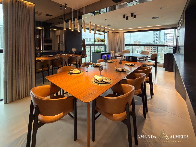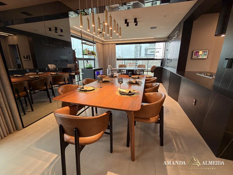 Apartamento mobiliado e finamente decorado no empreendimento “Times Square”, oferecendo 03 suítes (sendo 01 master com closet), living amplo, lavabo elegante, sala de estar e jantar integradas, sacada com churrasqueira a carvão, cozinha gourmet, espaço gourmet privativo, área de serviço equipada e 03 vagas de garagem.