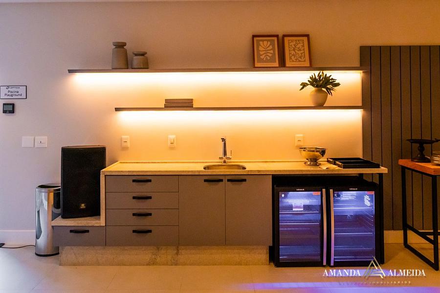 • Amplo Living com Cozinha Integrada e Churrasqueira a Carvão