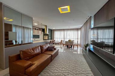 O apartamento, mobiliado e decorado, possui 03 dormitórios, sendo 01 suíte, todos com sacada, living integrado com sala de estar e jantar, ampla sacada com churrasqueira a carvão, lavabo, cozinha e área de serviço. Com 04 vagas de garagem, a unidade alia conforto, funcionalidade e estilo, ideal para quem busca um lar sofisticado e pronto para morar.
