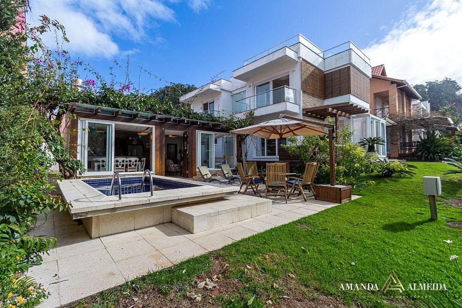 Em meio à exuberância da Mata Atlântica e a poucos passos do mar, esta casa mobiliada e decorada na Praia do Estaleiro é um convite ao requinte e à tranquilidade. Com 04 suítes, todas com sacada privativa, o imóvel oferece uma experiência residencial sofisticada, onde cada ambiente foi pensado para proporcionar conforto e bem-estar. O living integra sala de estar e jantar em um espaço amplo e elegante, complementado por uma acolhedora sala de TV, cozinha equipada, lavabo e área de serviço funcional. Para momentos de lazer, a residência conta com churrasqueira, piscina e um incrível rooftop com vista para o mar, que permite fechamento para maior privacidade e aproveitamento em todas as estações. A propriedade dispõe ainda de 02 vagas de garagem e uma área de lazer com dependência e banheiro, ideal para receber familiares e amigos com total comodidade.