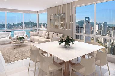 Sua beleza se revela em cada ambiente, mas é no exterior que a experiência se torna única: sacada ampla, espaço gourmet, terraços privativos e uma piscina exclusiva formam o cenário perfeito para desfrutar de momentos especiais. A vista panorâmica para o mar e para a cidade transforma cada instante em uma experiência inesquecível.