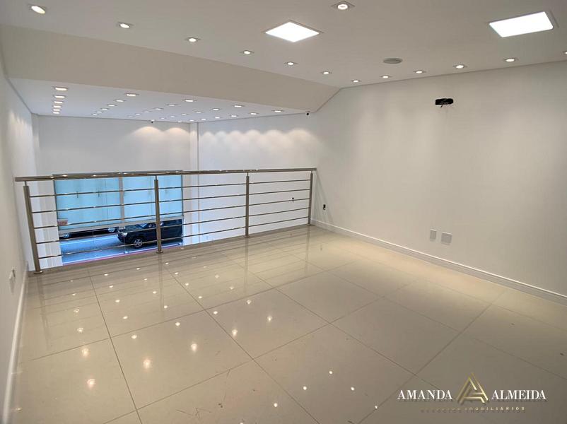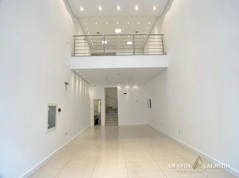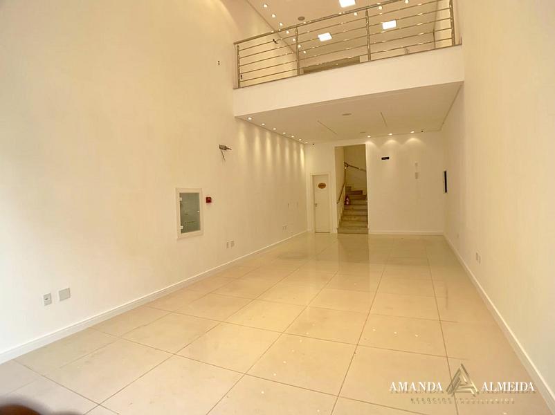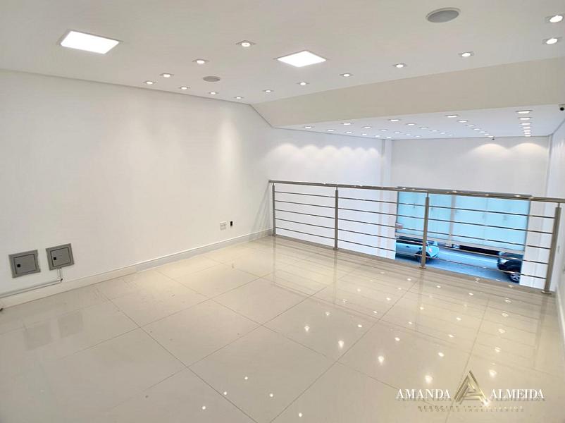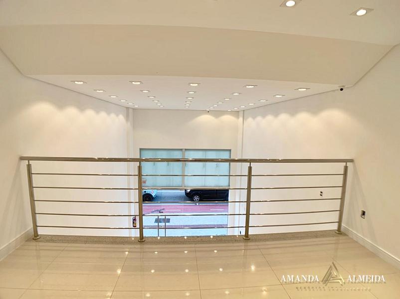 Sala comercial com 97m² de área privativa, com um amplo mezanino, um banheiro social e copa. Sala ampla, localizada em uma área movimentada, de grande circulação.